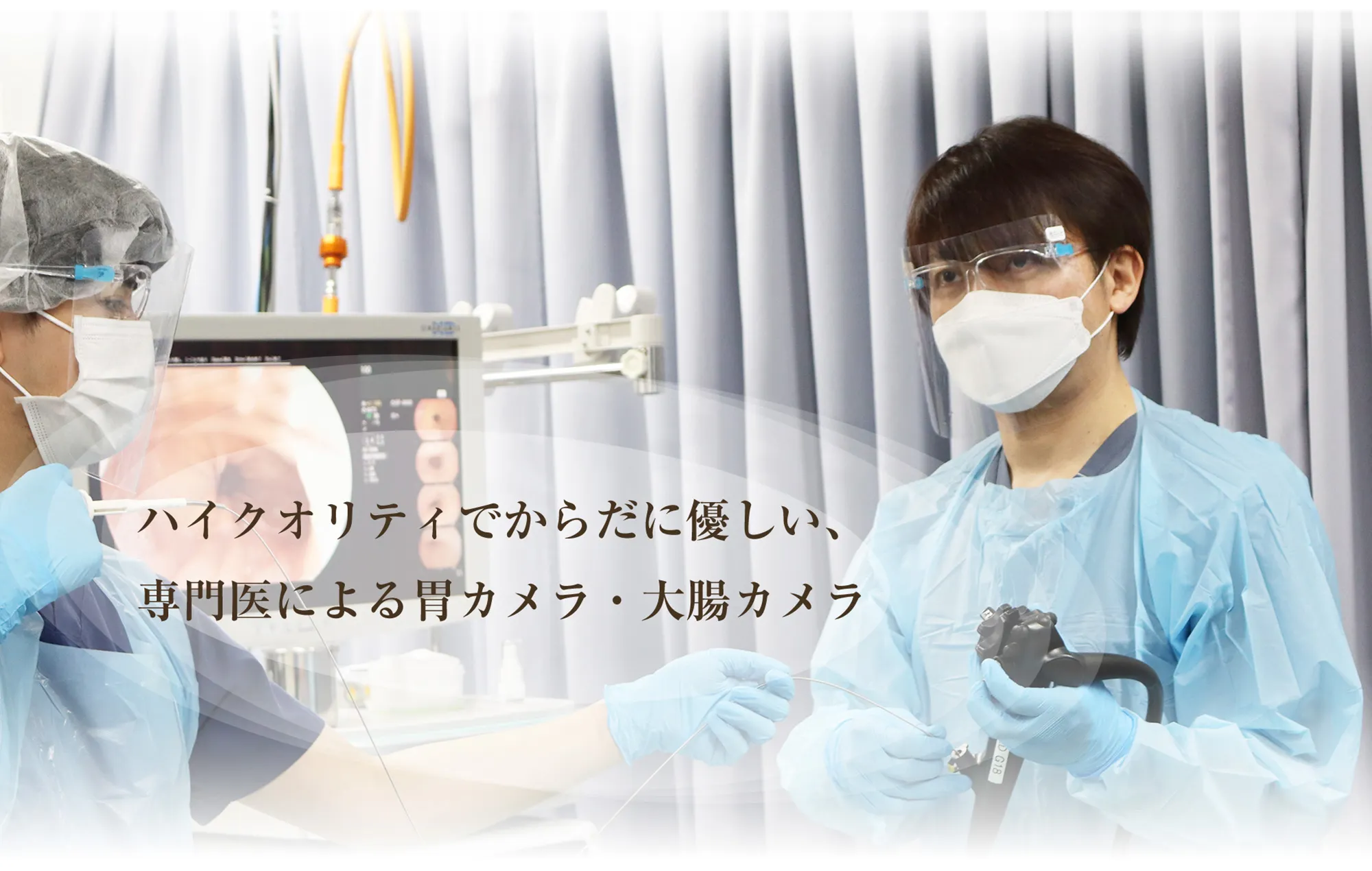 また、胃カメラ・大腸カメラともに炭酸ガス送気システムを導入し、お腹の張りや苦しさを大幅に軽減しています。