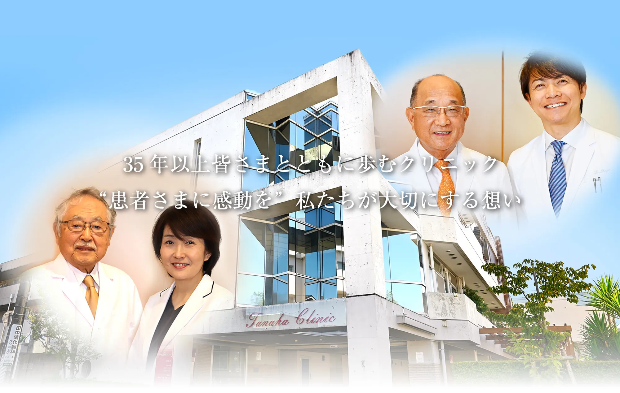 当院は平成2年に田中孝先生が創設され、“感動を呼ぶクリニック創り”を基本理念として、今日まで歩み続けてまいりました。