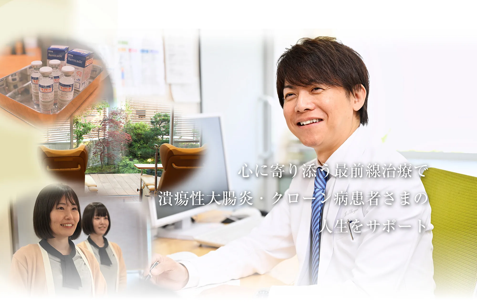 炎症性腸疾患の専門医が一人ひとりの症状や生活スタイルに合わせた治療を行い、再燃予防や生活指導などを含めた継続的なサポートを行います。