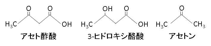 体内に存在するケトン体にはアセト酢酸、3-ヒドロキシ酪酸、アセトンなどがあります。